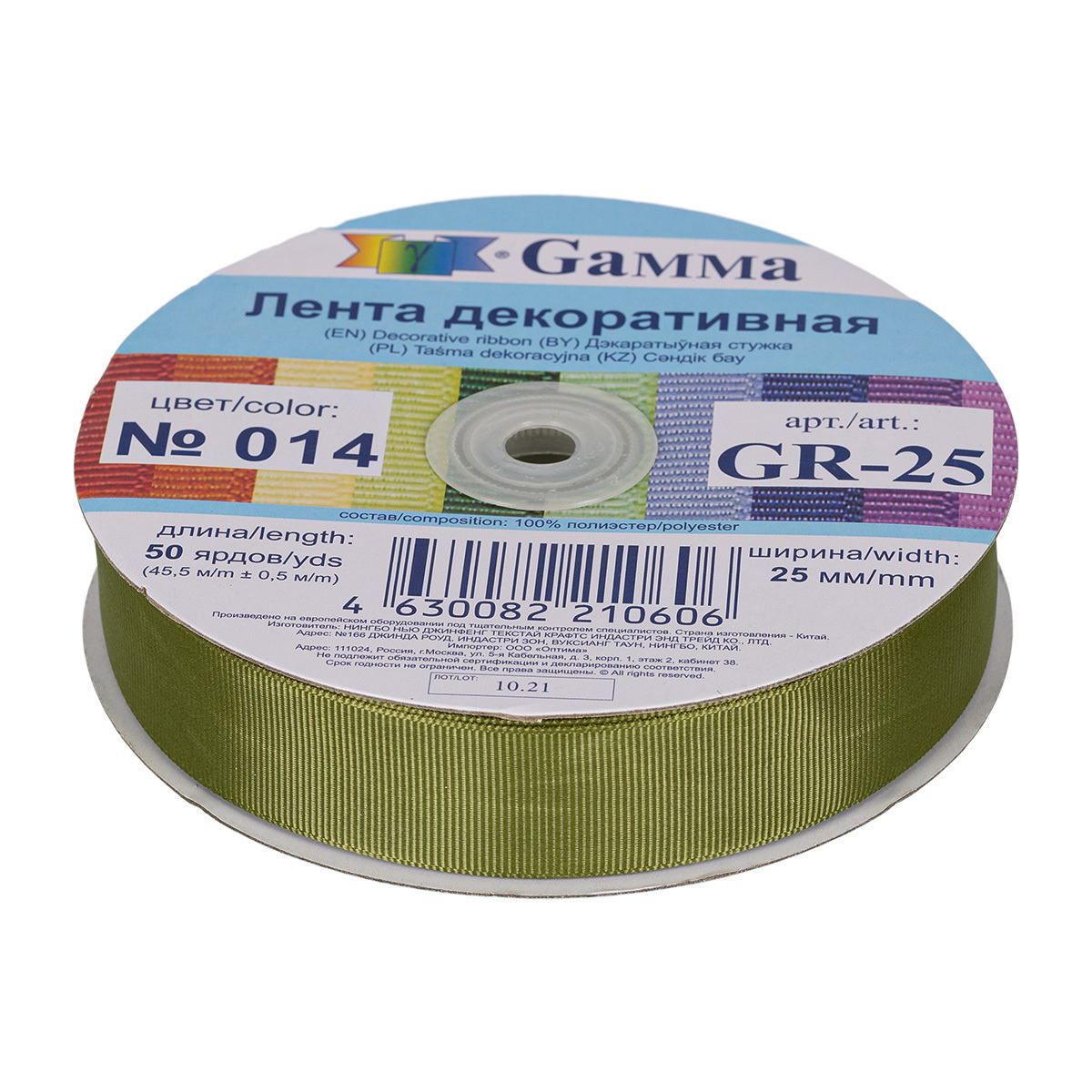 Лента репсовая (в рубчик) 25.0 мм / 45.5 метров, 014 мох, Gamma GR-25