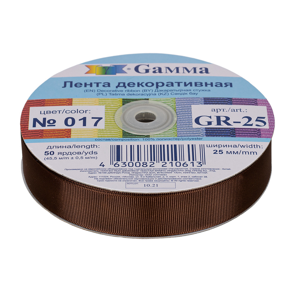 Лента репсовая (в рубчик) 25.0 мм / 45.5 метров, 017 т.коричневый, Gamma GR-25