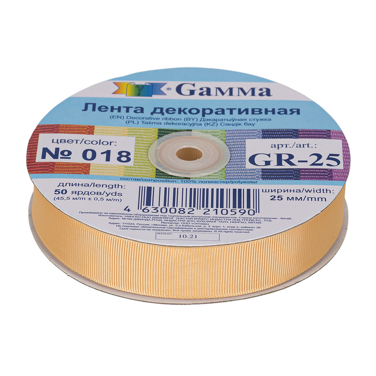 Лента репсовая (в рубчик) 25.0 мм / 45.5 метров, 018 бежевый, Gamma GR-25