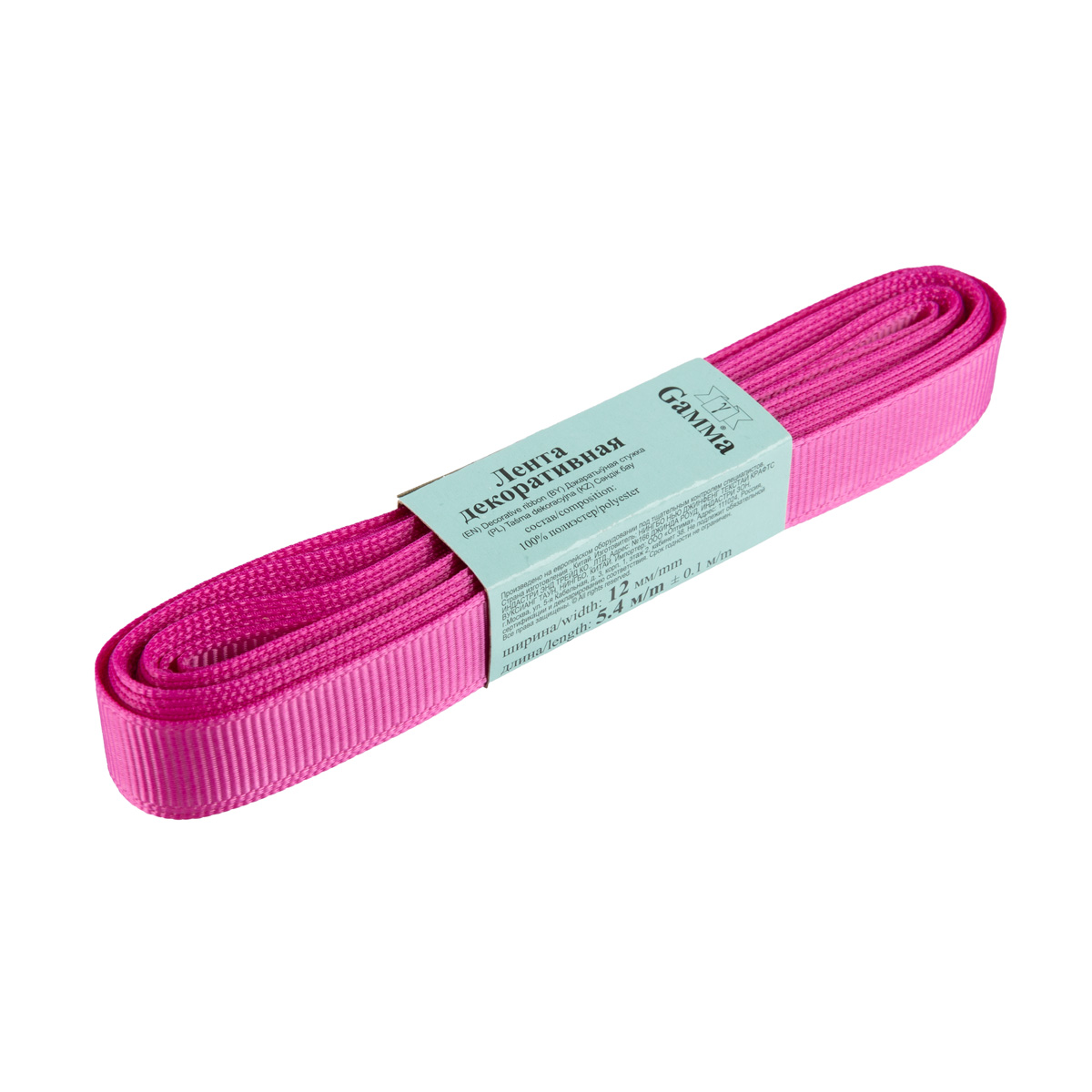 Лента репсовая нарезка 12.0 мм / 10 шт по 5.4 метра, 008 садовая роза, Gamma GR-12