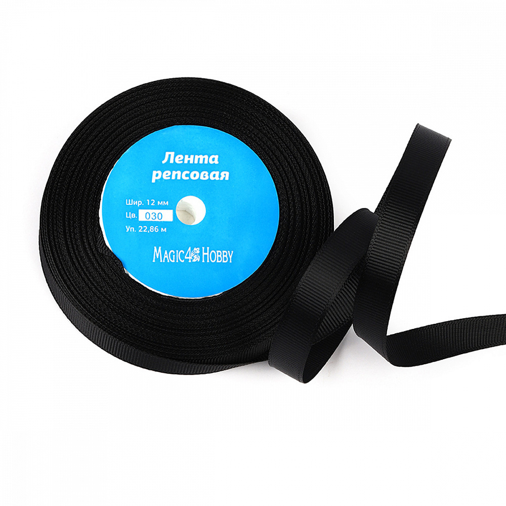 Лента репсовая (в рубчик) 12.0 мм цв. 030 черный уп.22.86м (±1м)
