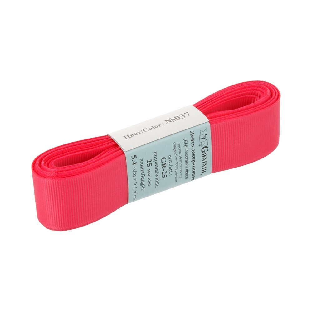 Лента репсовая нарезка 25.0 мм / 5 шт по 5.4 метра, 037 т.розовый, Gamma GR-25