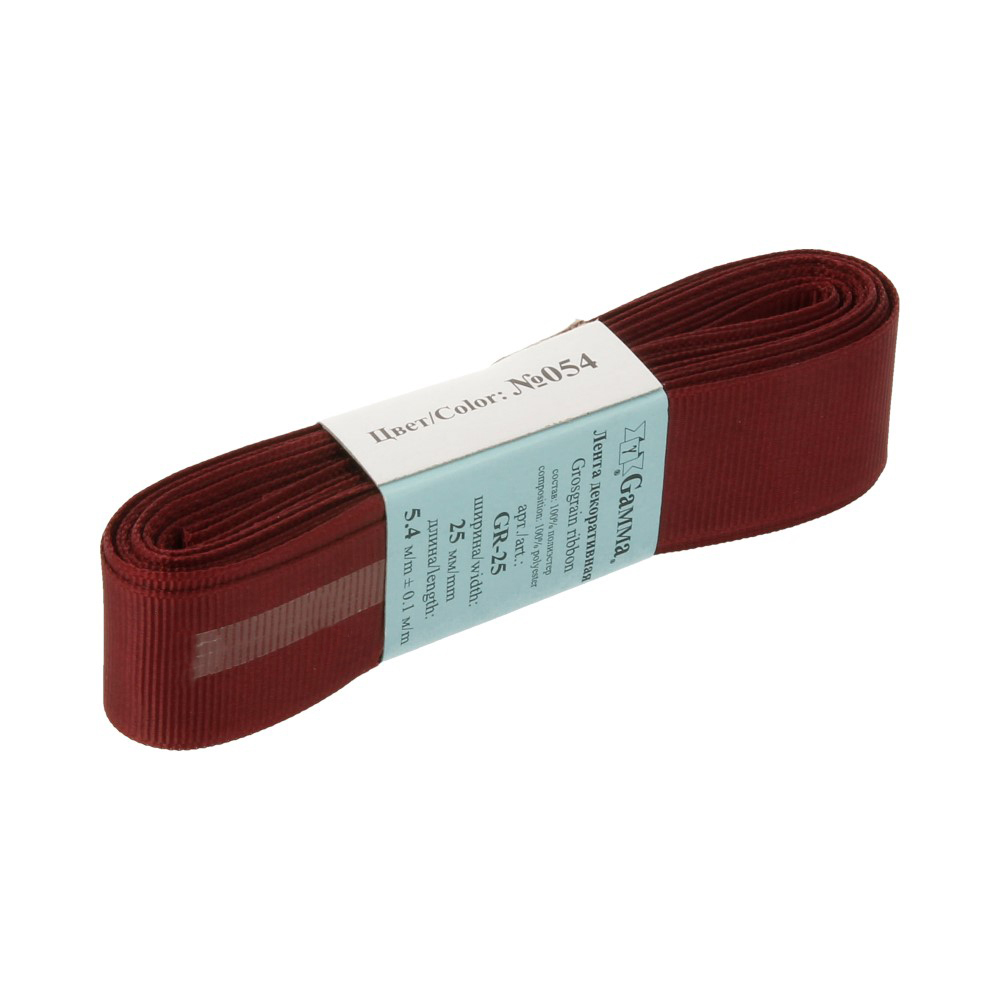 Лента репсовая нарезка 25.0 мм / 5 шт по 5.4 метра, 054 бордовый, Gamma GR-25