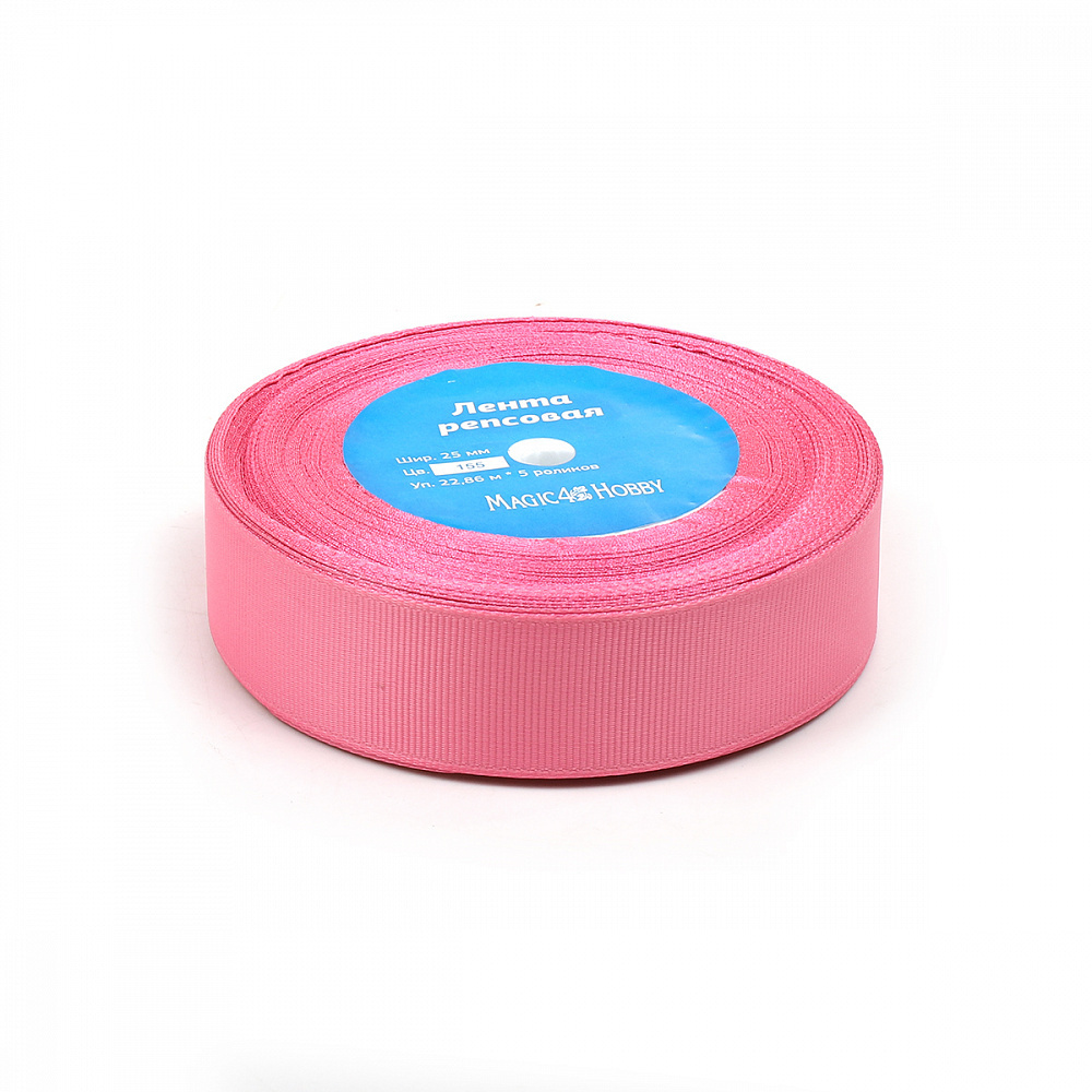 Лента репсовая (в рубчик) 25.0 мм, цв. 155 ярк.розовый For Hobby, уп. 22.86м (±1м)