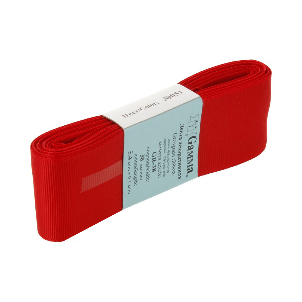 Лента репсовая нарезка 38.0 мм / 5 шт по 5.4 метра, 051 красный, Gamma GR-38