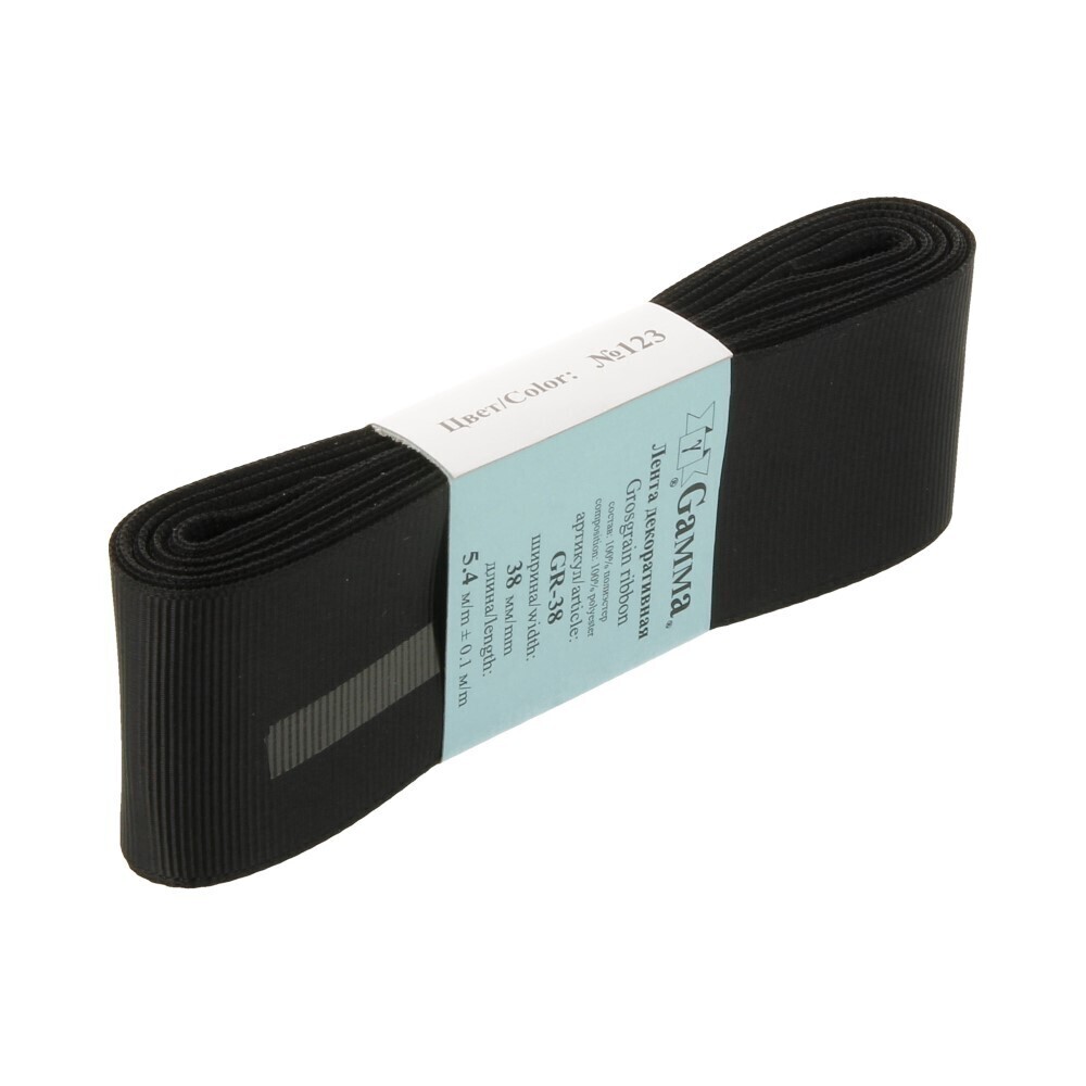 Лента репсовая нарезка 38.0 мм / 5 шт по 5.4 метра, 123 черный, Gamma GR-38