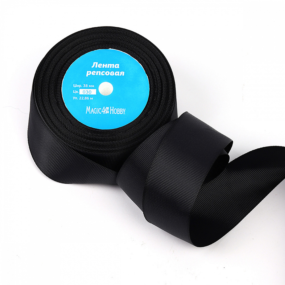 Лента репсовая (в рубчик) 38.0 мм цв. 030 черный уп.22.86м (±1м)
