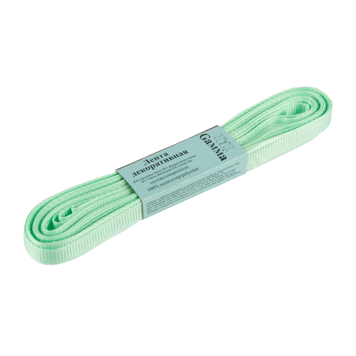 Лента репсовая нарезка _6.0 мм / 10 шт по 5.4 метра, 015 пастельно-зеленый, Gamma GR-06