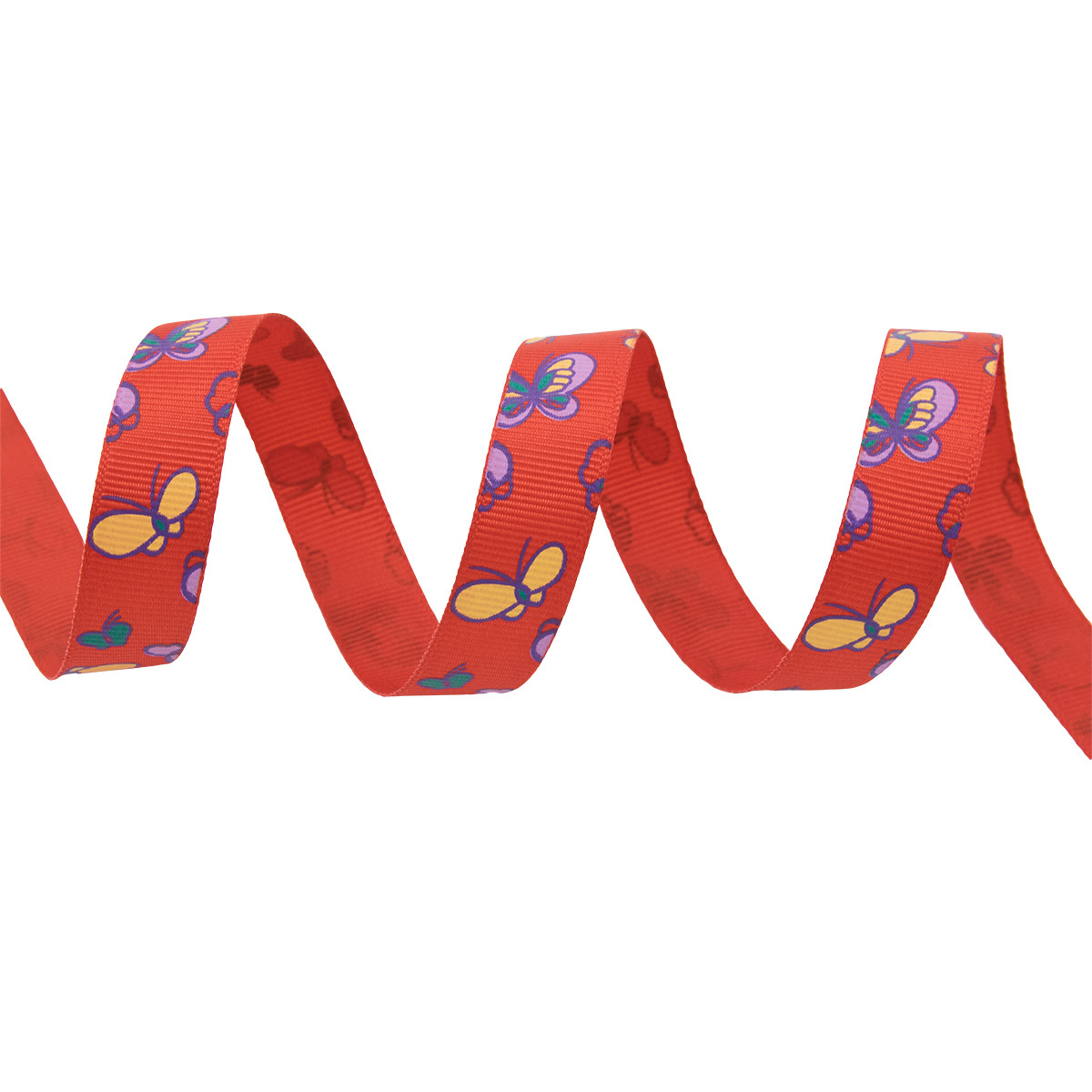 Лента репсовая (в рубчик) Бабочки 1 1,5см*22.86 м (красный)
