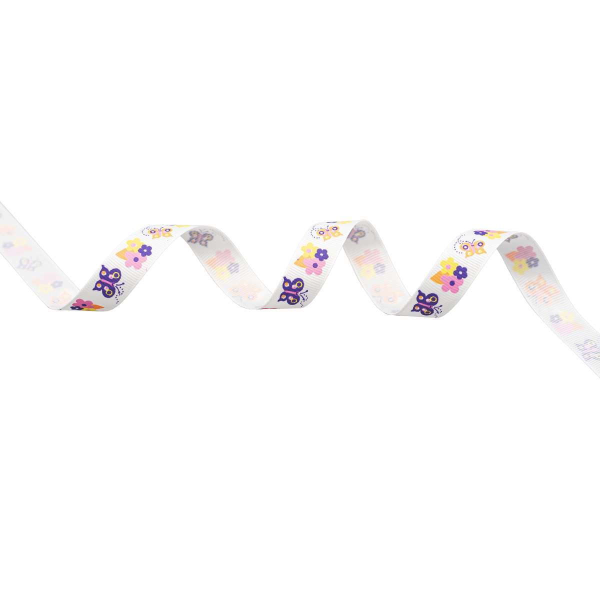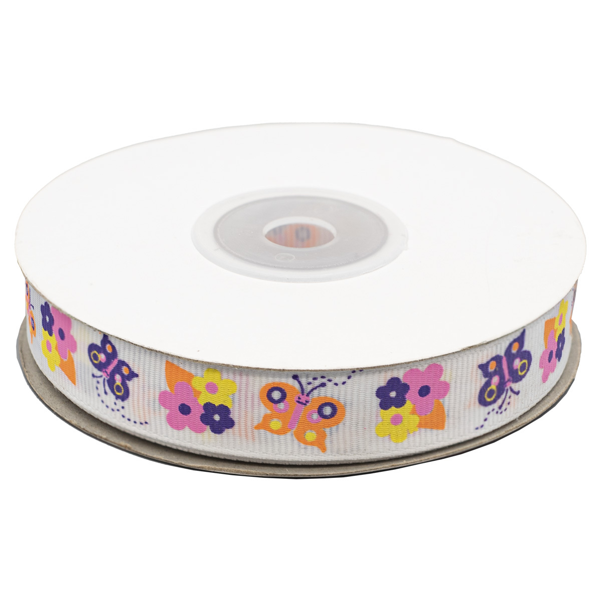 Лента репсовая (в рубчик) Бабочки 2 1,5см*22.86 м (белый)