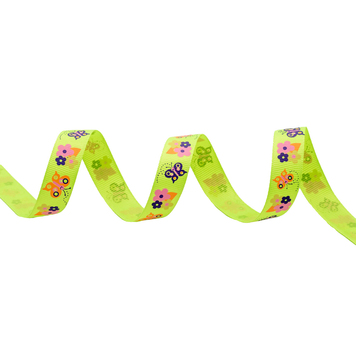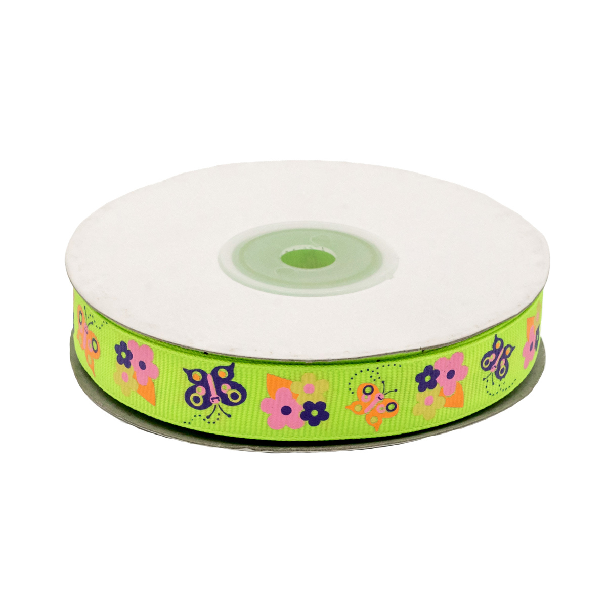 Лента репсовая (в рубчик) Бабочки 2 1,5см*22.86 м (желтый неон)