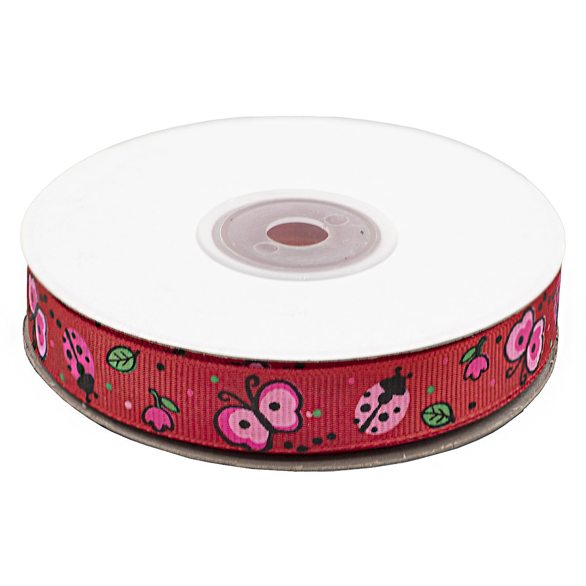 Лента репсовая (в рубчик) Бабочки и цветы 1,5см*22.86 м (красный)