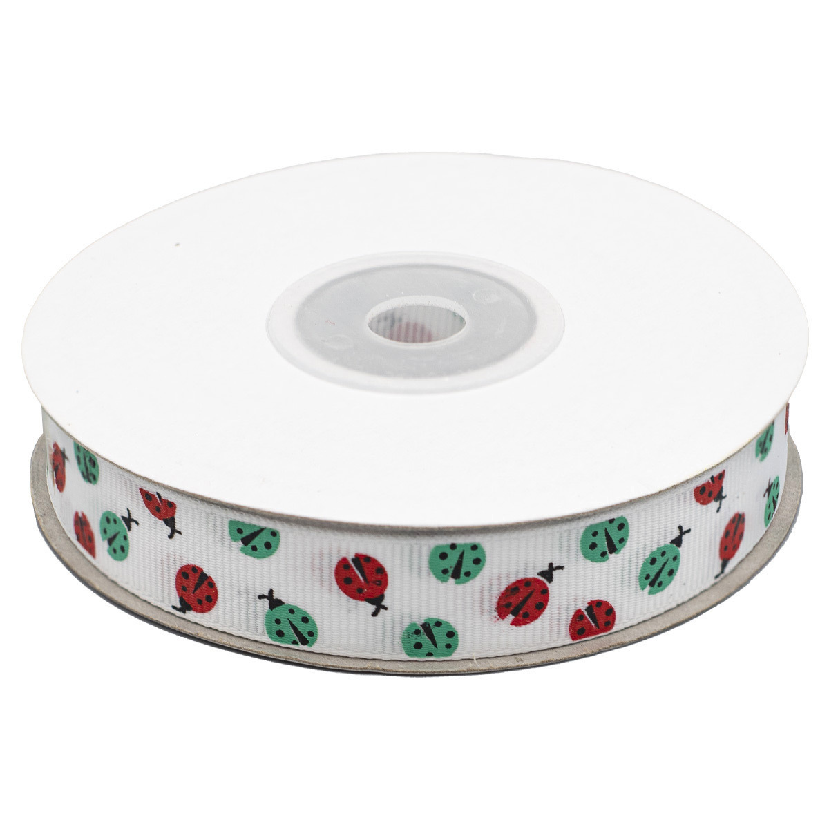 Лента репсовая (в рубчик) Божьи коровки 1,5см*22.86 м (белый)