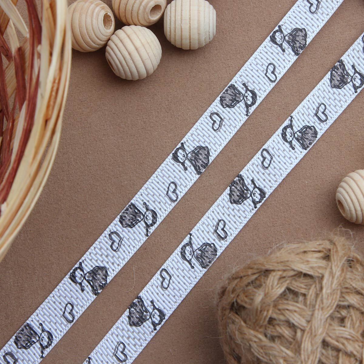 Лента репсовая (в рубчик) Девочка в платьице, 10 мм, 3м, черно-белый