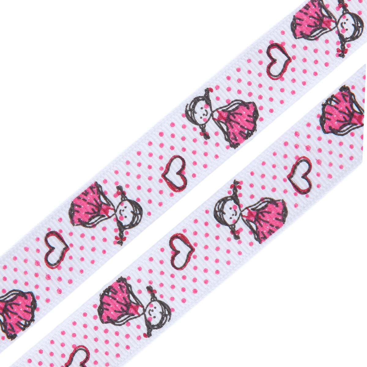 Лента репсовая (в рубчик) Девочка в платьице, 15 мм, 3м, бело-розовый