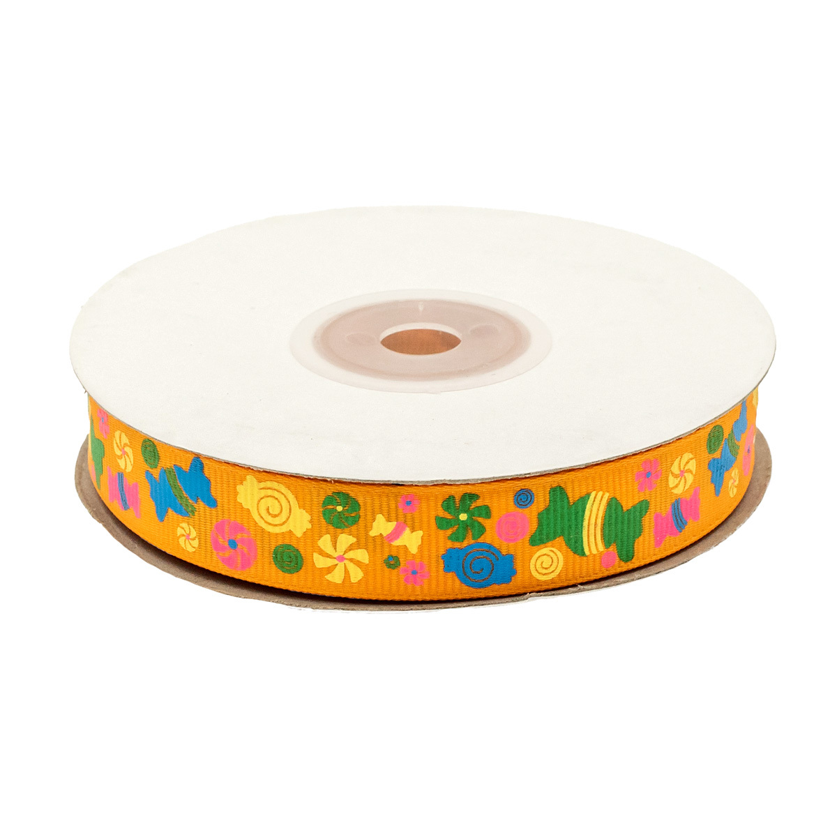 Лента репсовая (в рубчик) Конфетки 1,5см*22.86 м (оранжевый)