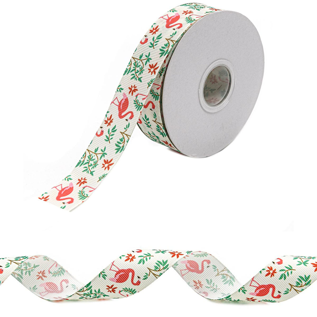 Лента репсовая (в рубчик) Красные фламинго 25 мм, 22.86 м