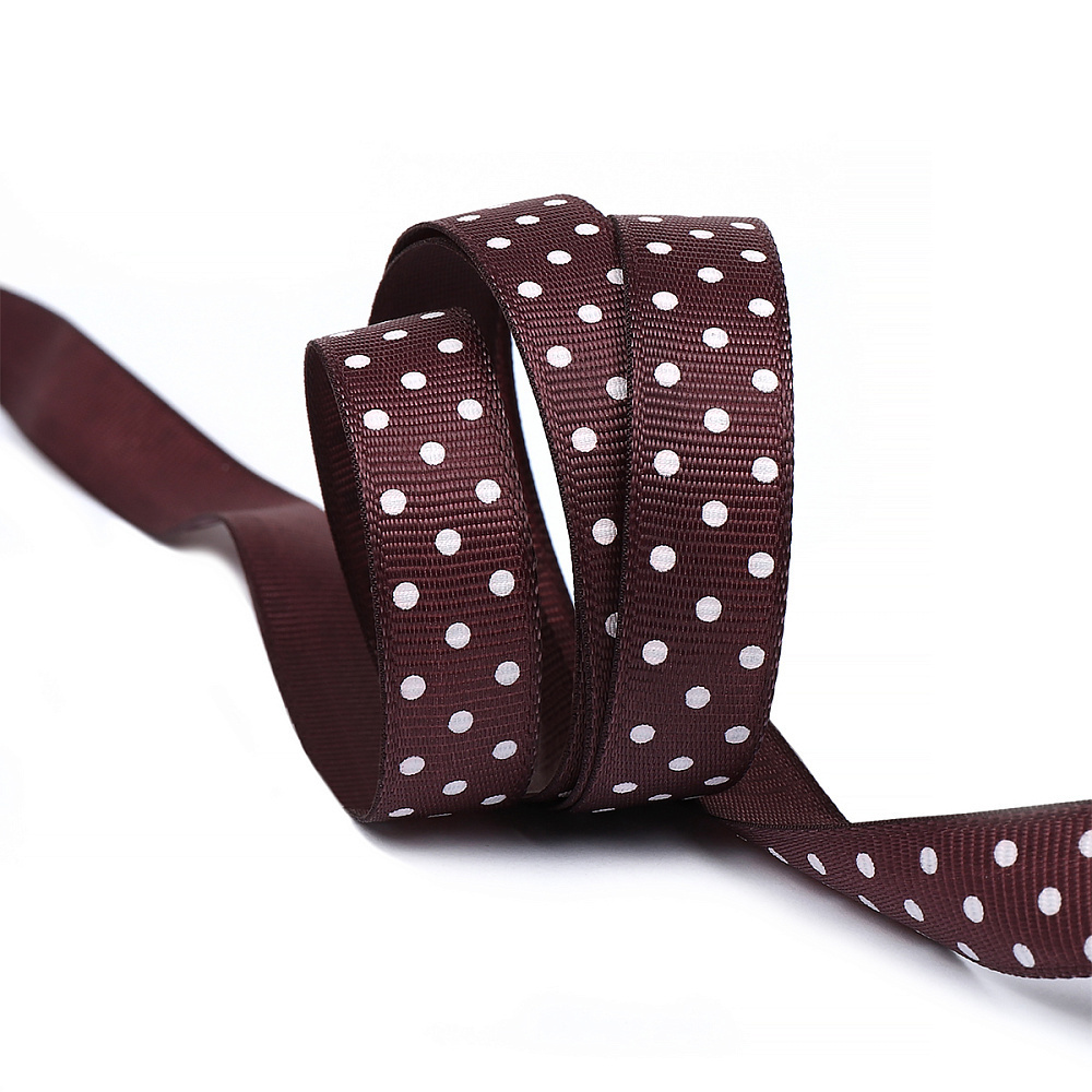 Лента репсовая (в рубчик) 12.0 мм / 27.4±2 метров, LDRGS86412 Горошек, бордовый