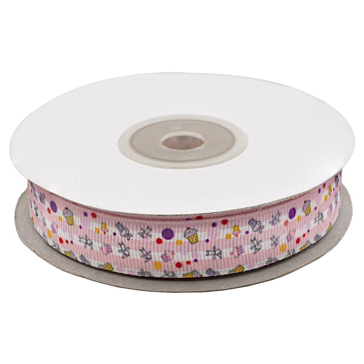 Лента репсовая (в рубчик) Мини-пирожные 15 мм, 20м