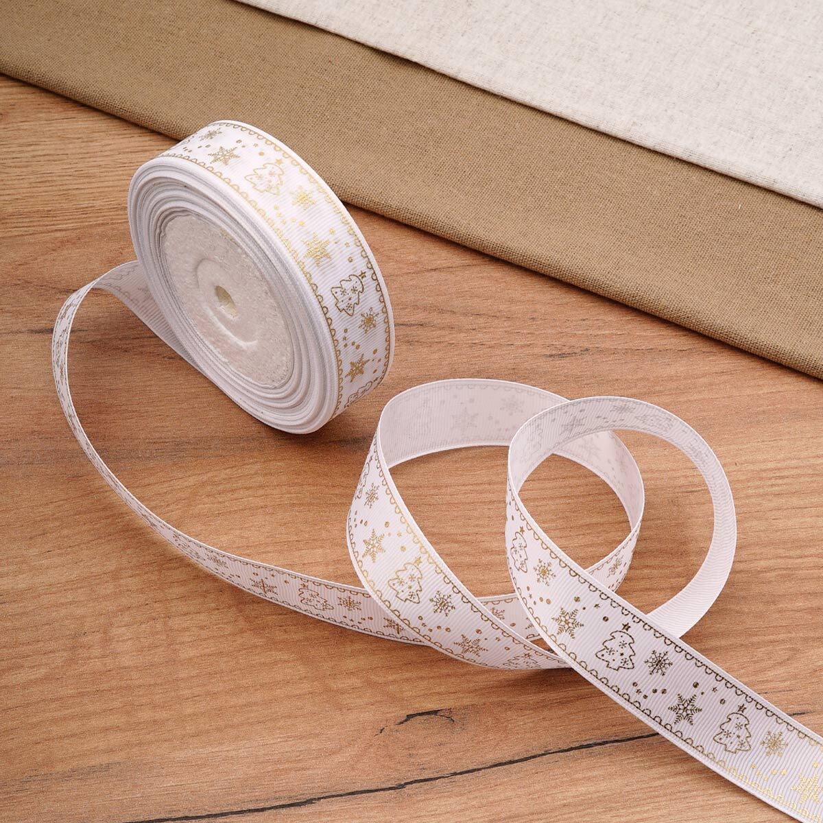 Лента репсовая (в рубчик) Новый год 25мм / 22.86±1 метров, цв. белый, 3AR3009