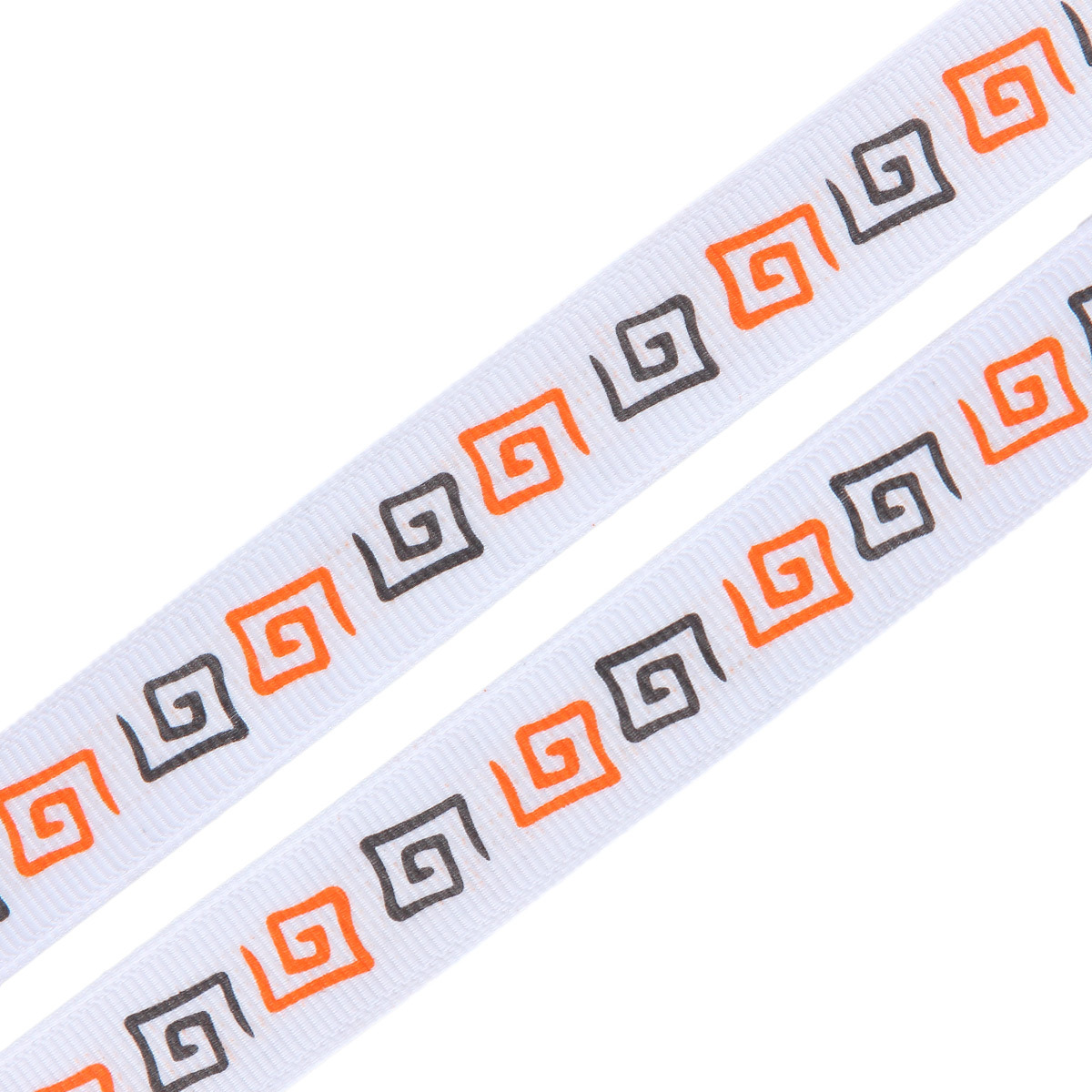 Лента репсовая (в рубчик) Орнамент Меандр, 15 мм, 3м, белый/оранжевый