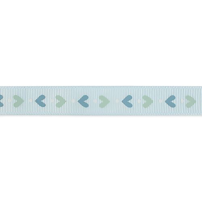 Лента репсовая (в рубчик) Орнамент Сердца, 15 мм, 22,5м (голубой)