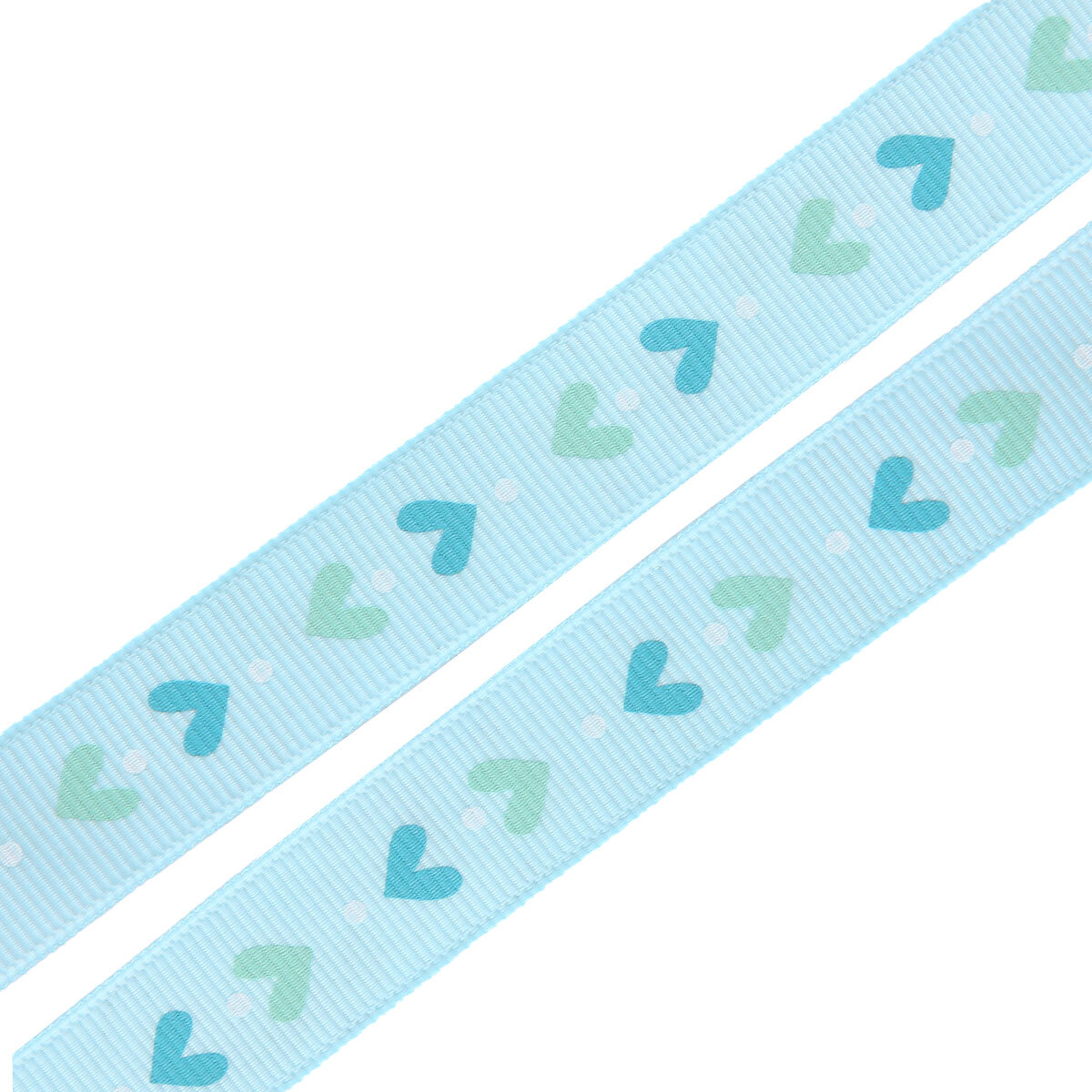Лента репсовая (в рубчик) Орнамент Сердца, 15 мм, 3м, голубой