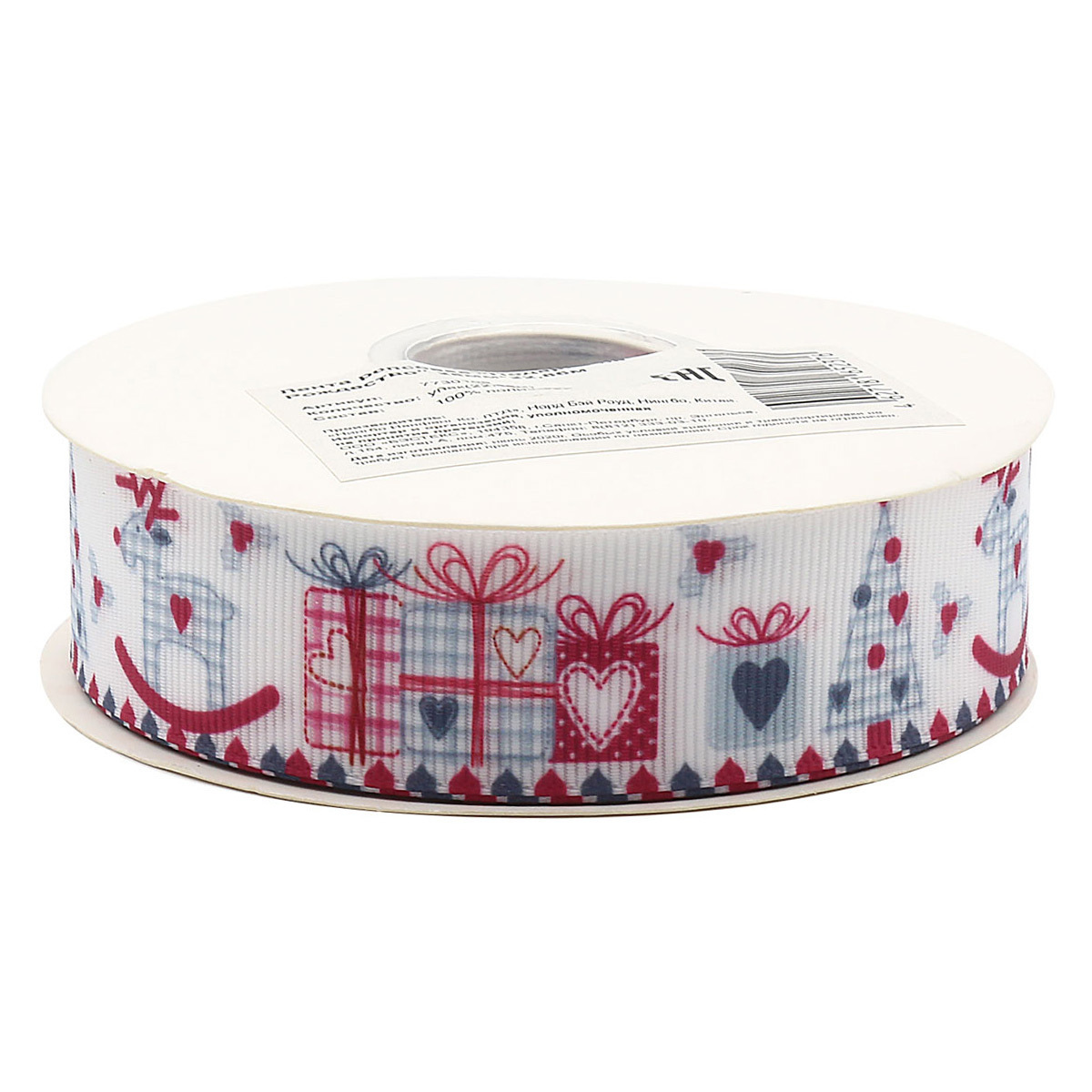 Лента репсовая (в рубчик) Подарки на Рождество 25 мм, 22.86 м