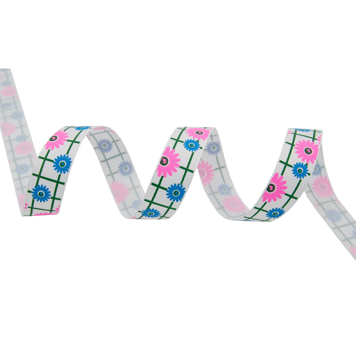 Лента репсовая (в рубчик) Подсолнухи 1 1,5см*22.86 м (белый)