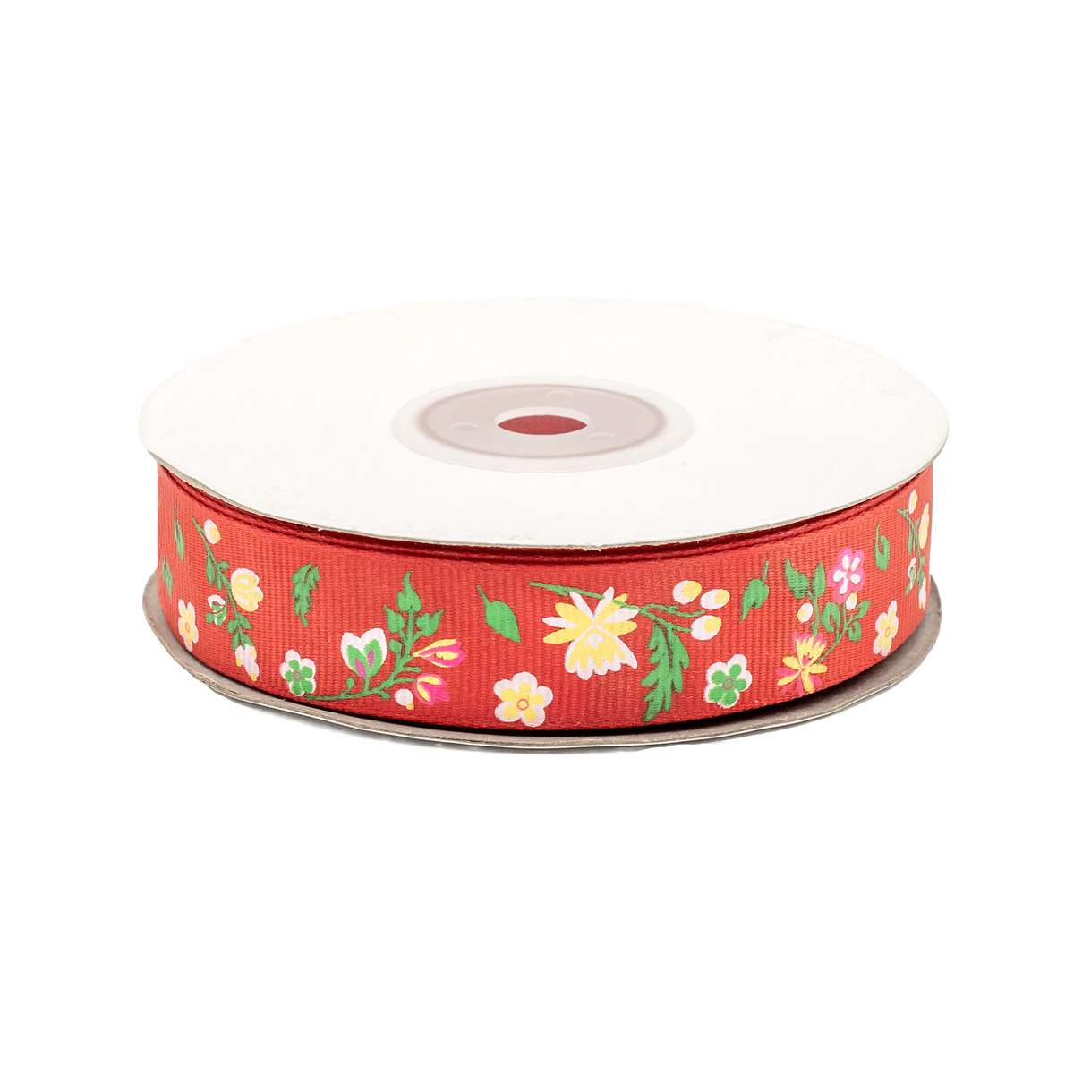 Лента репсовая (в рубчик) Полевые цветы 20.0 мм, 22.86 м (красный)