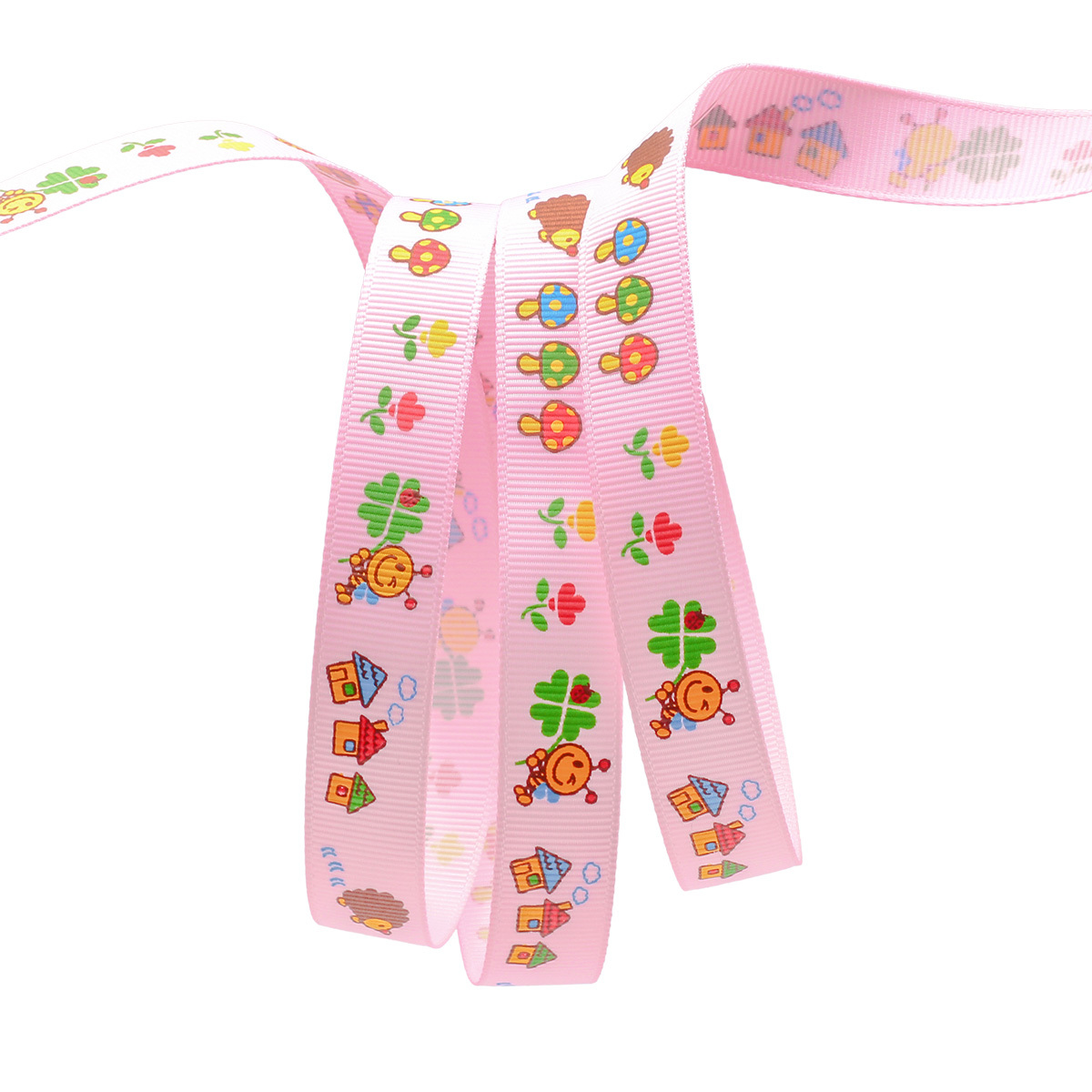 Лента репсовая (в рубчик) PREMIUM Ежик и Пчелка, 16 мм, 22,5м (A5-012 розовый)