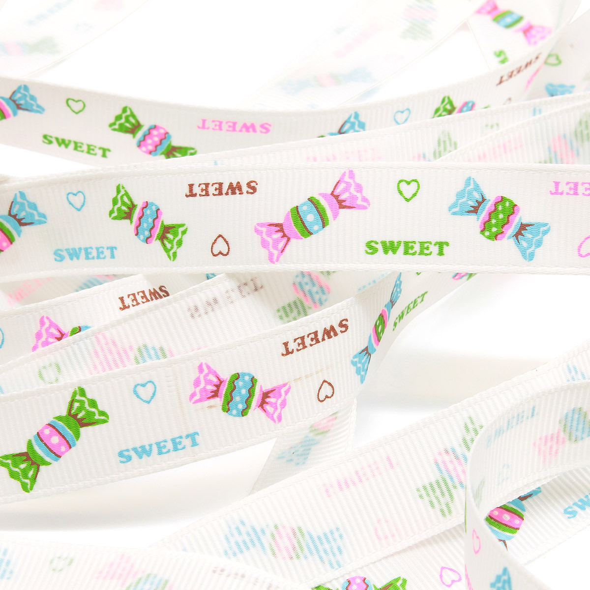 Лента репсовая (в рубчик) PREMIUM Конфетки, 16 мм, 22,5м (A5-001 белый)
