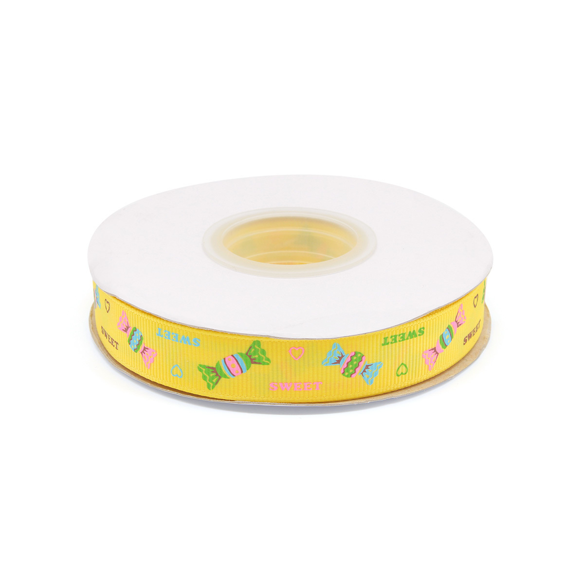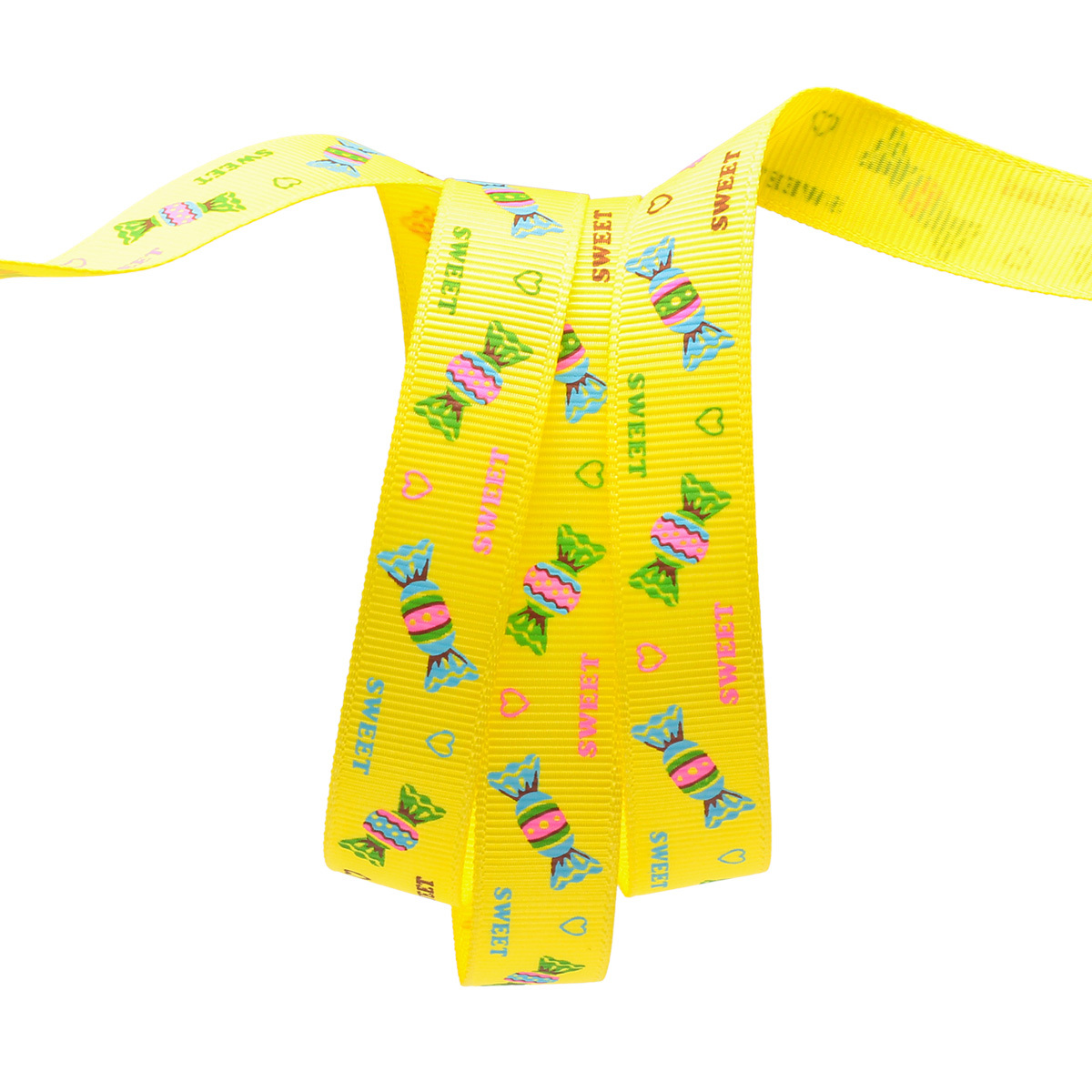 Лента репсовая (в рубчик) PREMIUM Конфетки, 16 мм, 22,5м (A5-052 желтый)