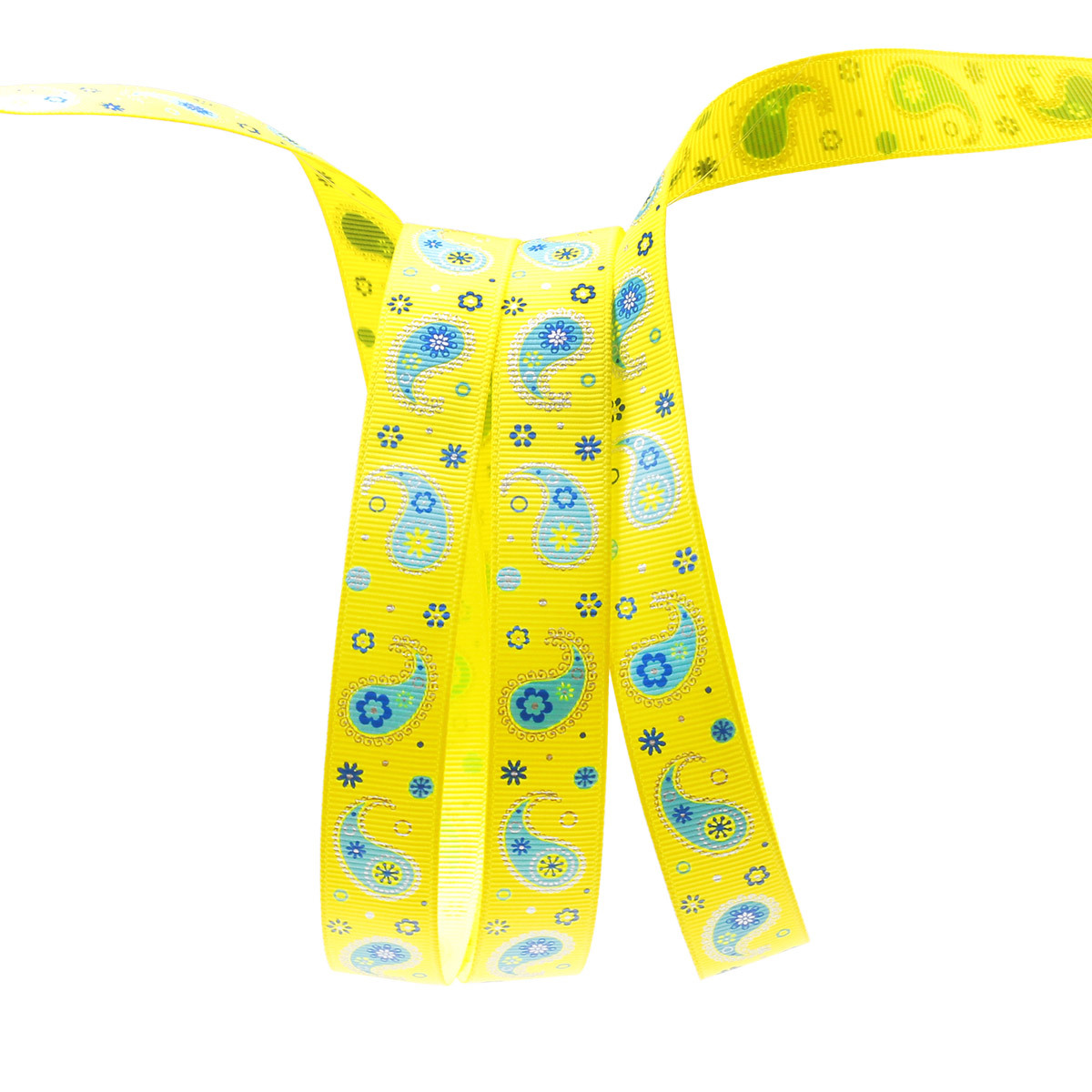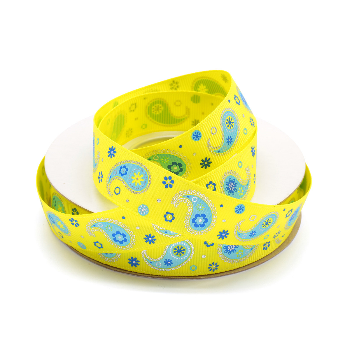 Лента репсовая (в рубчик) PREMIUM Огуречный принт 20 мм, 22,5м (525 желтый)