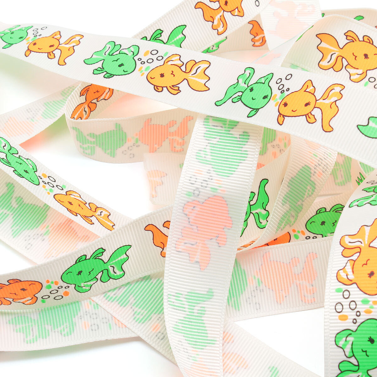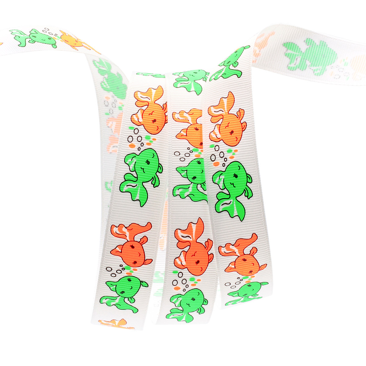 Лента репсовая (в рубчик) PREMIUM Рыбки 22 мм, 22,5м (029 белый)