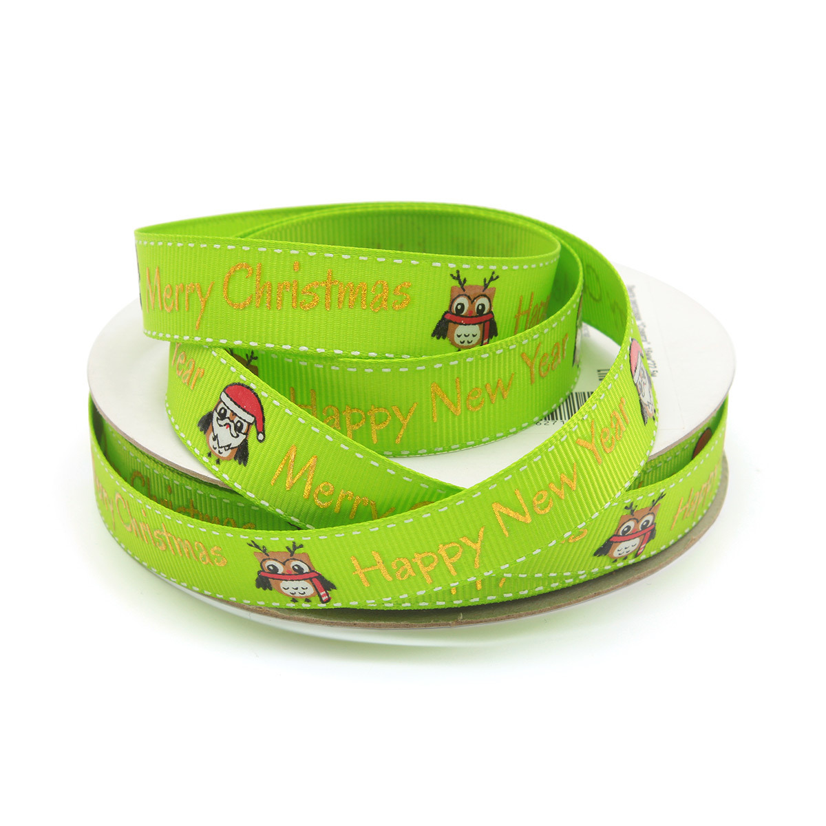 Лента репсовая (в рубчик) PREMIUM Совята, 16 мм, 22,5м (A5-059 зеленый)
