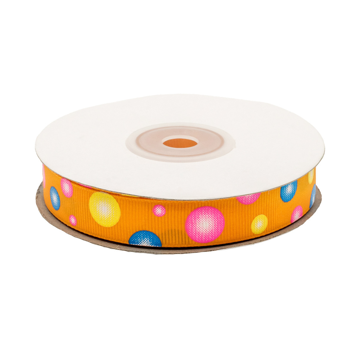 Лента репсовая (в рубчик) Пузырьки 1,5см*22.86 м (оранжевый)