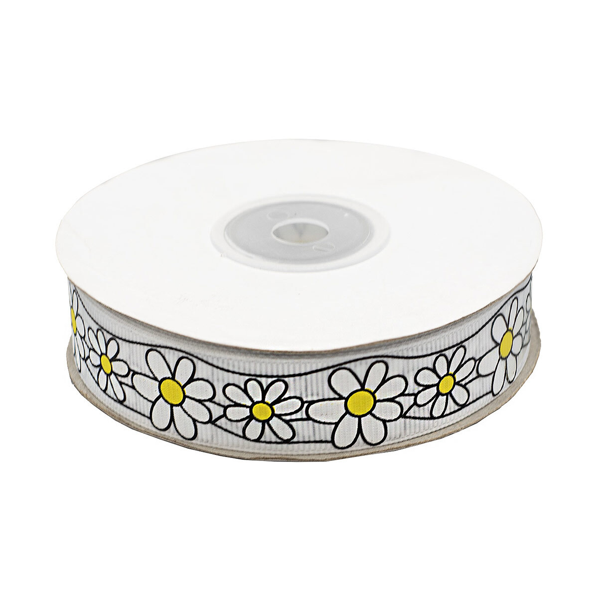 Лента репсовая (в рубчик) Ромашки 1,5см*22.86 м (белый)