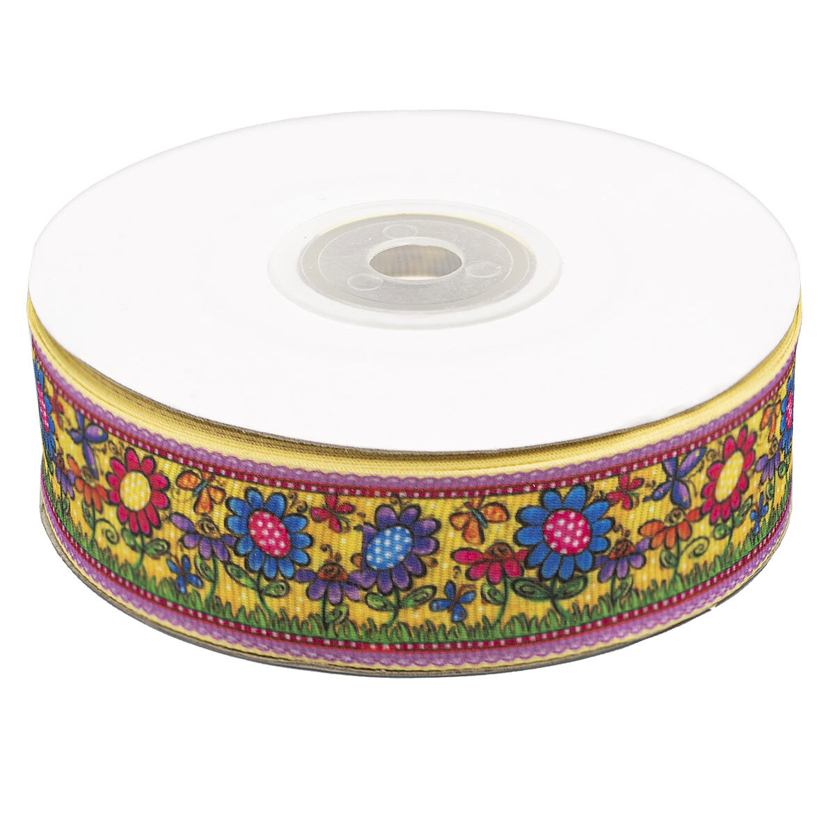 Лента репсовая (в рубчик) Ромашки и бабочки 25.0 мм, 22.86 м