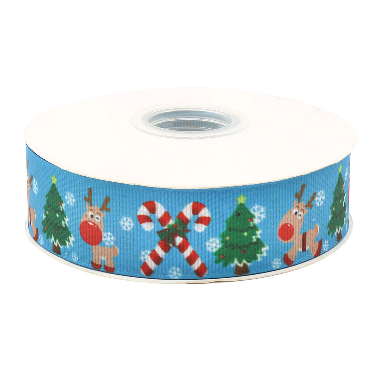 Лента репсовая (в рубчик) Рождественский олень 25 мм, 22.86 м