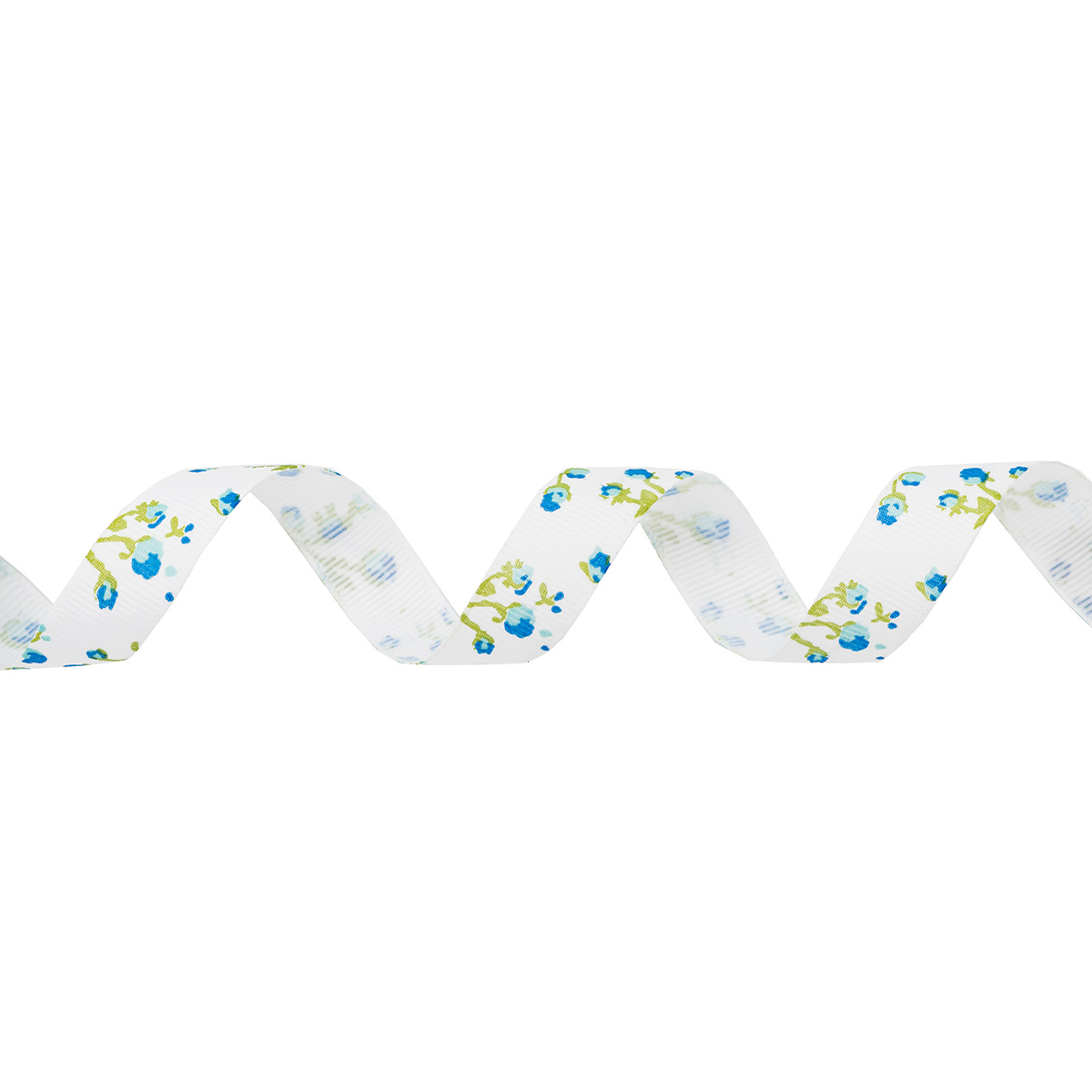 Лента репсовая (в рубчик) Розочки 1,5см*22.86 м (голубой)