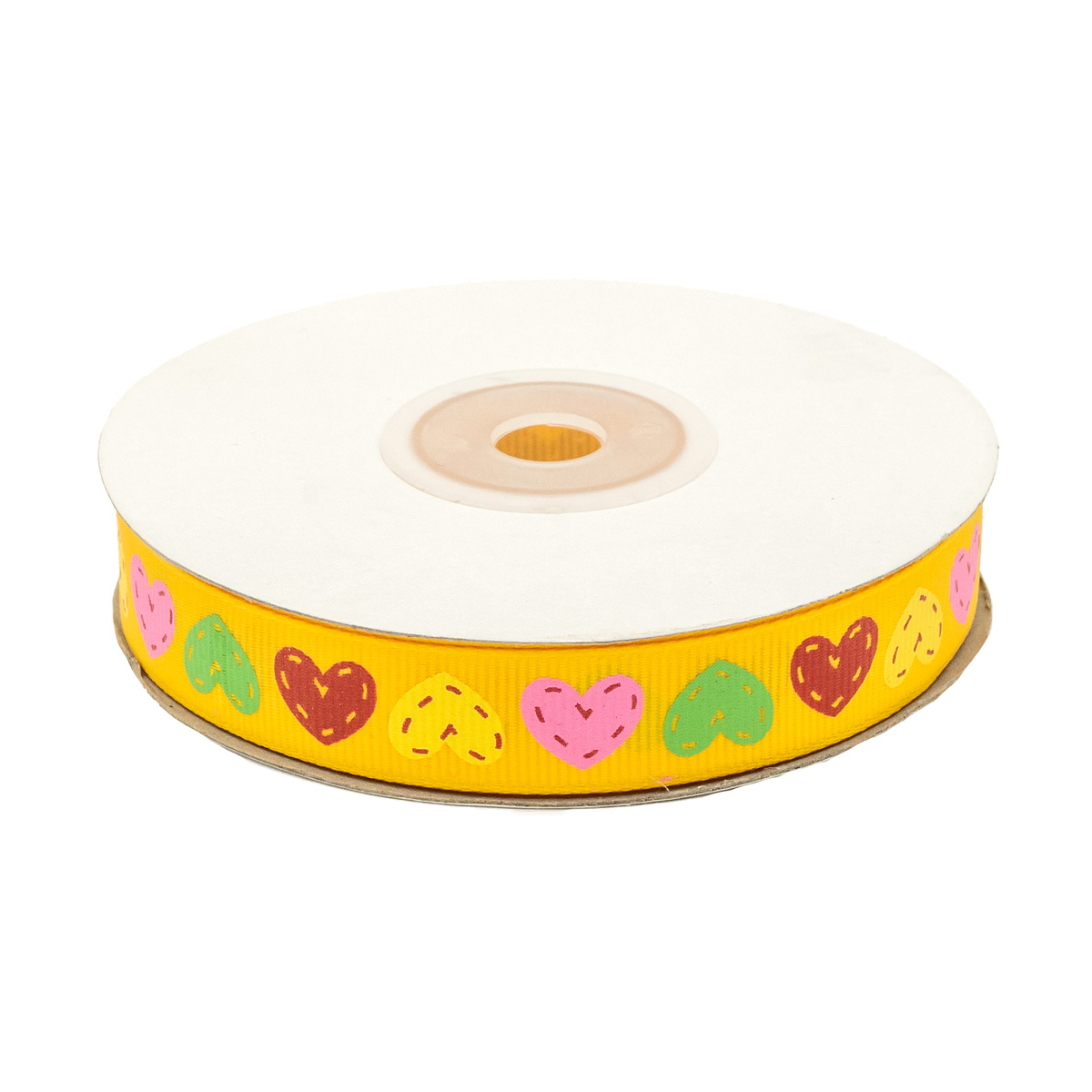 Лента репсовая (в рубчик) Сердечки 1,5см*22.86 м (желтый)