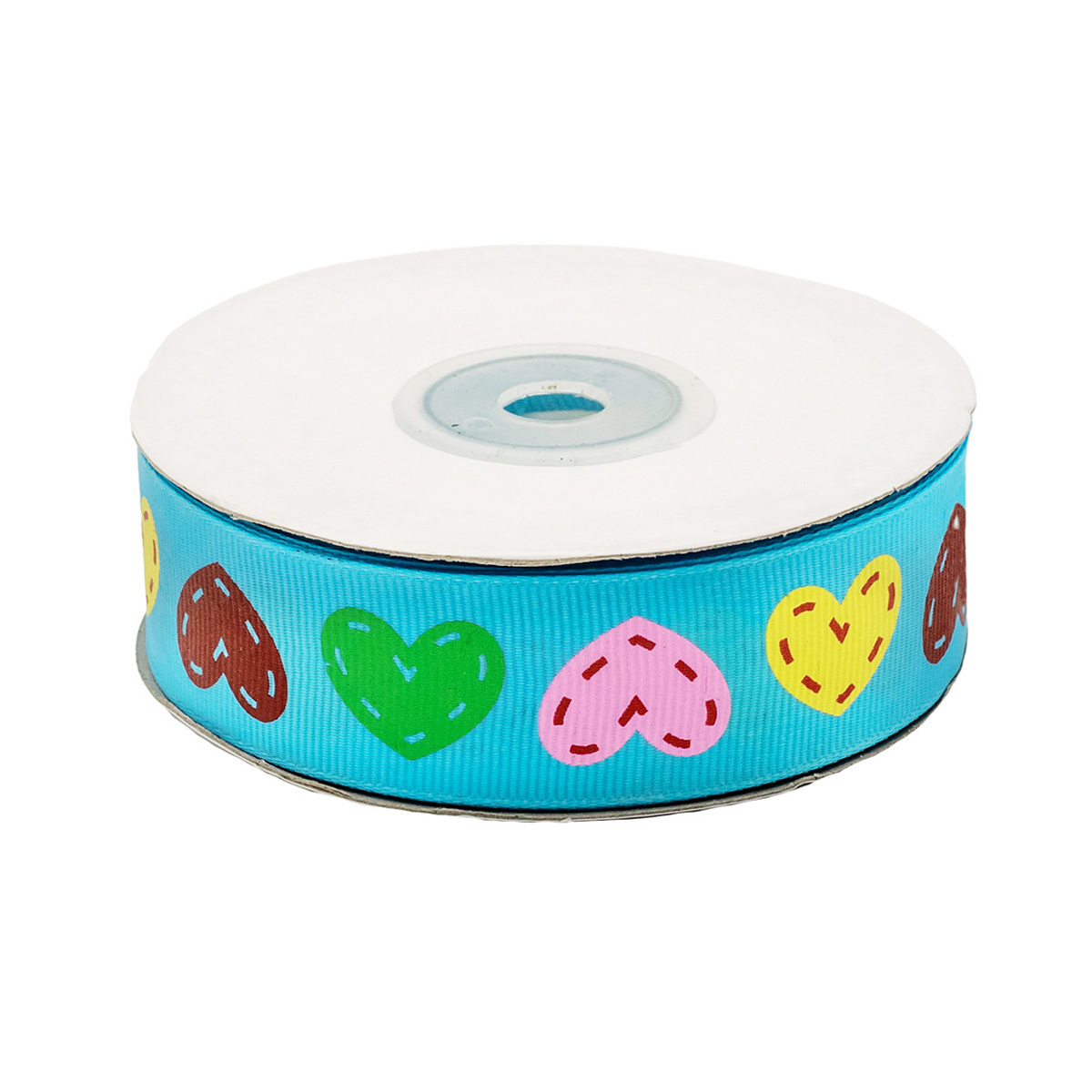 Лента репсовая (в рубчик) Сердечки 25.0 мм, 22.86 м 3-46 (голубой)