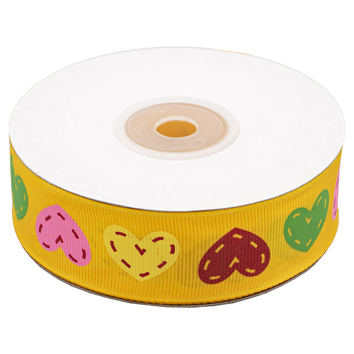Лента репсовая (в рубчик) Сердечки 25.0 мм, 22.86 м 3-46 (желтый)