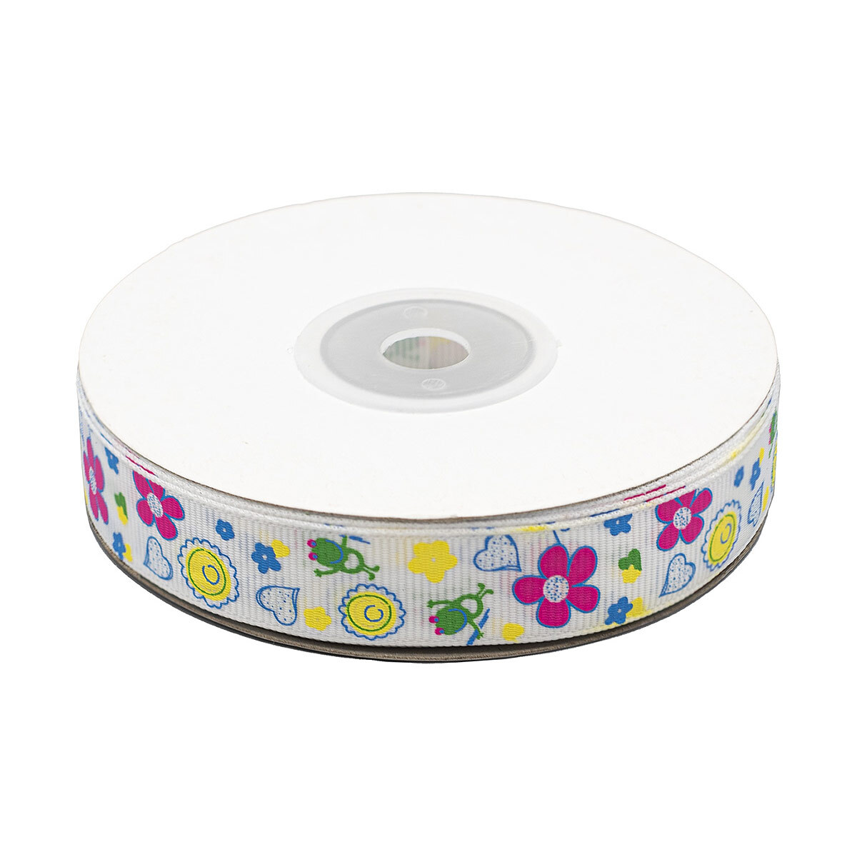 Лента репсовая (в рубчик) Сердечки и цветы 1,5см*22.86 м (белый)