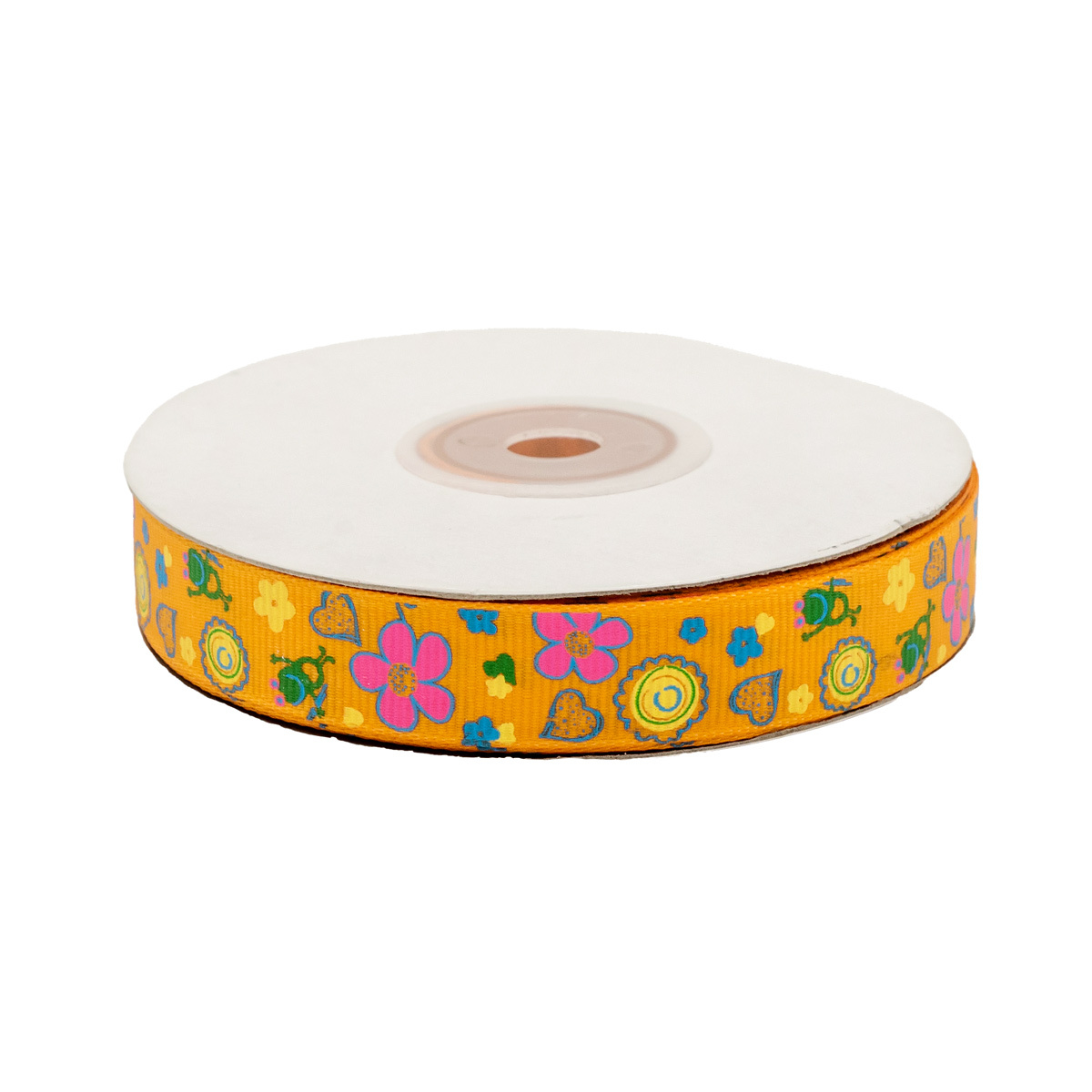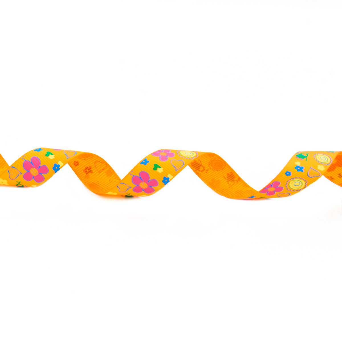 Лента репсовая (в рубчик) Сердечки и цветы 1,5см*22.86 м (оранжевый)