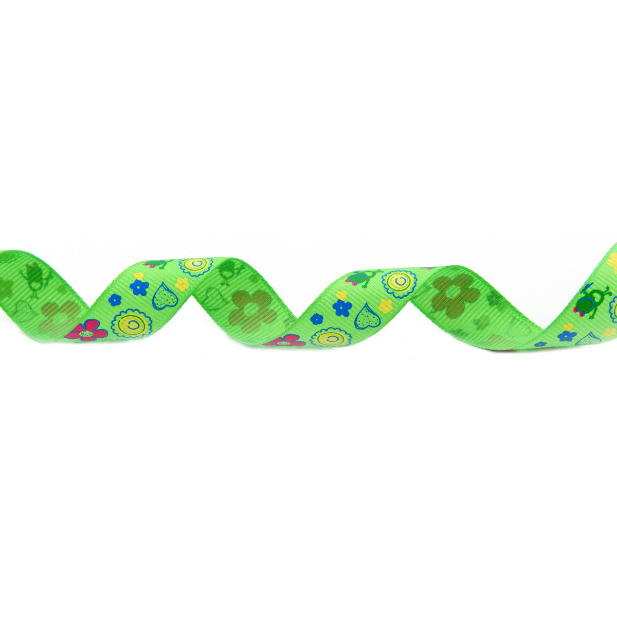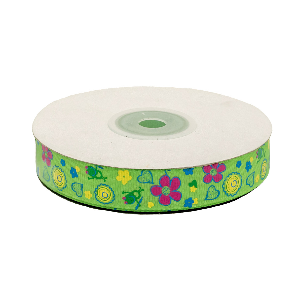 Лента репсовая (в рубчик) Сердечки и цветы 1,5см*22.86 м (салатовый)