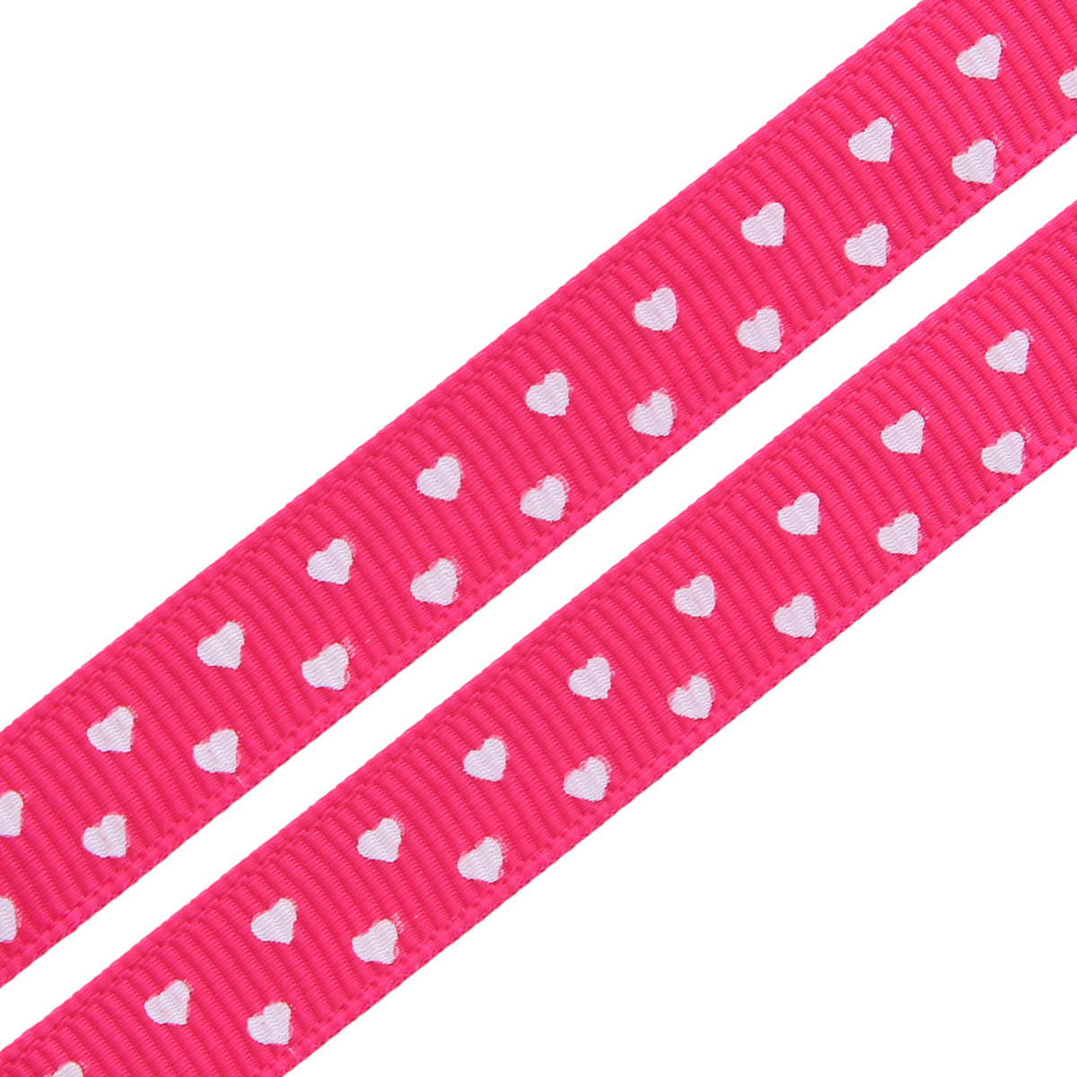 Лента репсовая (в рубчик) Сердечки мелкие, 10 мм, 3м, розовый
