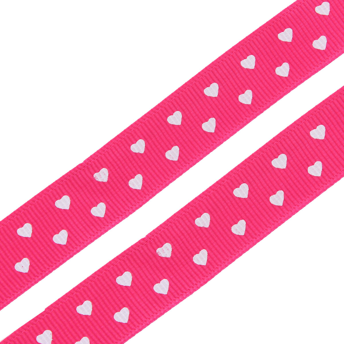 Лента репсовая (в рубчик) Сердечки мелкие, 15 мм, 3м, розовый