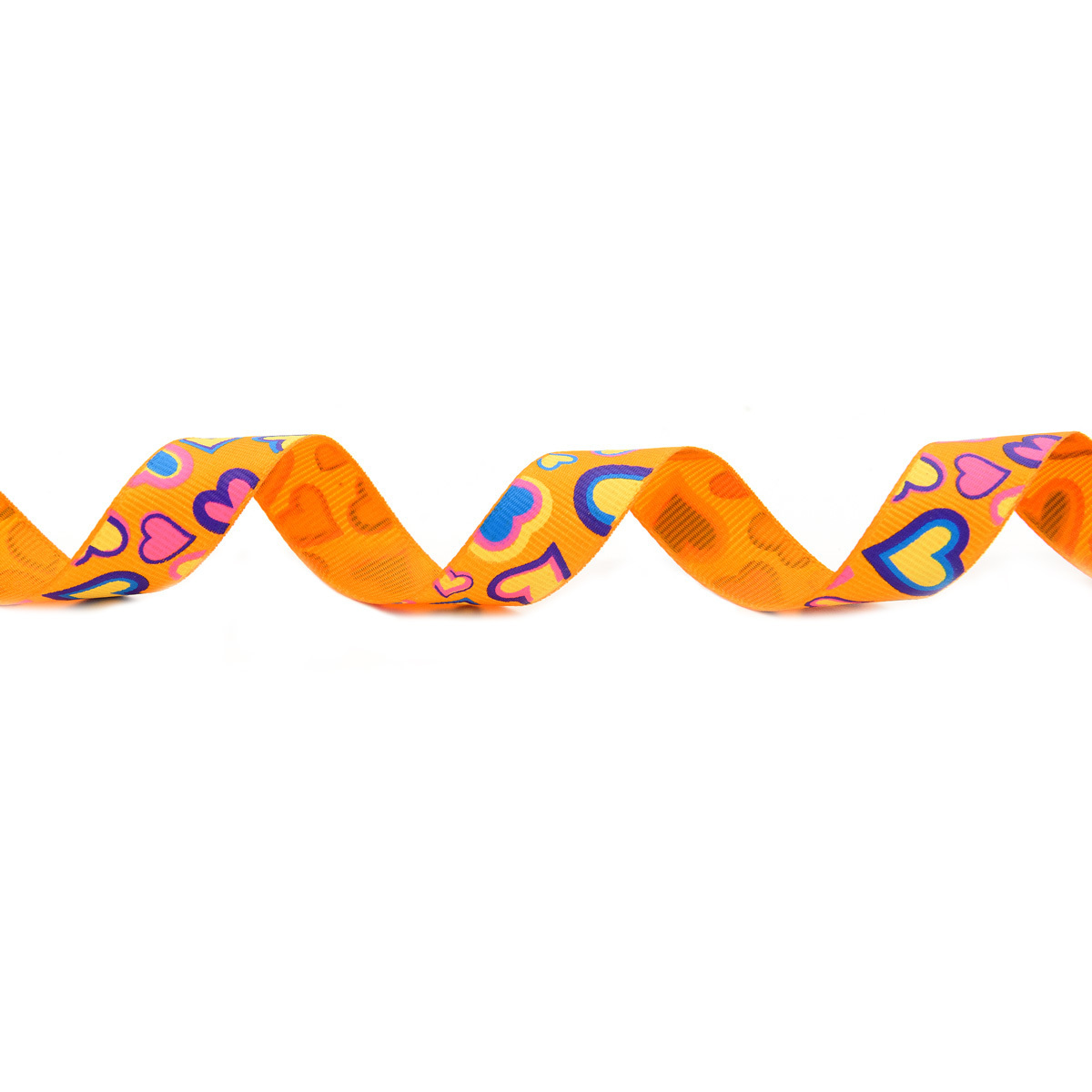 Лента репсовая (в рубчик) Сердца 1,5см*22.86 м (оранжевый)